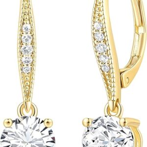 Cossa Dangle Earrings 14K Gold Drop Earrings for Women Dangle Stylish Leverback Earring with Cubic Zirconia Drop Earring A Must-have Fashion Accessory