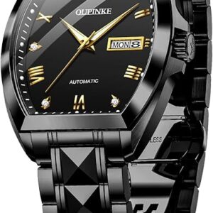 OUPINKE Men’s Luxury Watches Automatic Mechanical Unique Tonneau Sapphire Crystal Tungsten Steel Date Waterproof Luminous Dress Wrist Watches
