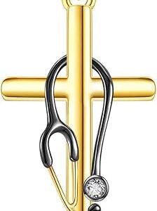 Stethoscope Necklace 14K Solid Gold Nurse Necklace 14 Karat Gold Stethoscope Jewelry Nursing Gifts for Women