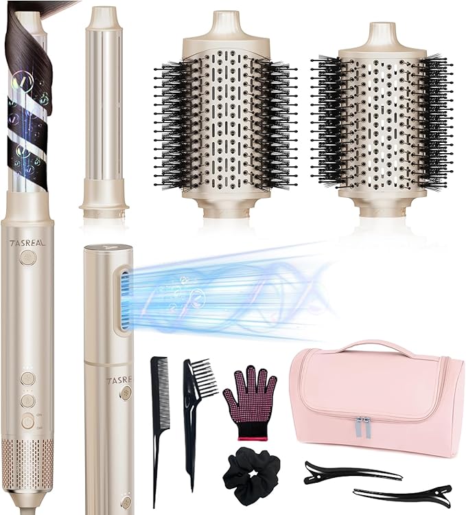 - BEST GIFT FOR WOMEN & 2-YEAR AFTER-SALES SUPPORT & 11 ACCESSORIES: TASREAL air styling brush, with its elegant appearance, makes the perfect gift for women’s birthdays—ideal for friends, wives, etc. 11 accessories are all highly practical: 1* High-Speed Hair Dryer, 1* Volumizing Comb, 1* 180° Comb, 2* 1.25” Auto Curlers, 1* Heat-Resistant Glove, 2* Hair Clips, 1* Cleaning Brush, 1* Hair Tie, 1* Comb. All neatly packaged in a storage case, this kit provides a salon-worthy experience at home. 2 years support with 100% problem resolution