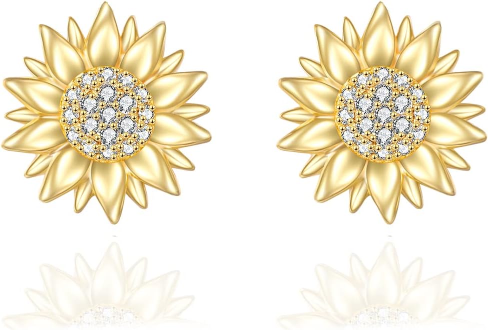 KECHO 14k Yellow Gold Sunflower Jewelry for Women, Fine Gold You are My Sunshine Jewelry Gifts for Her